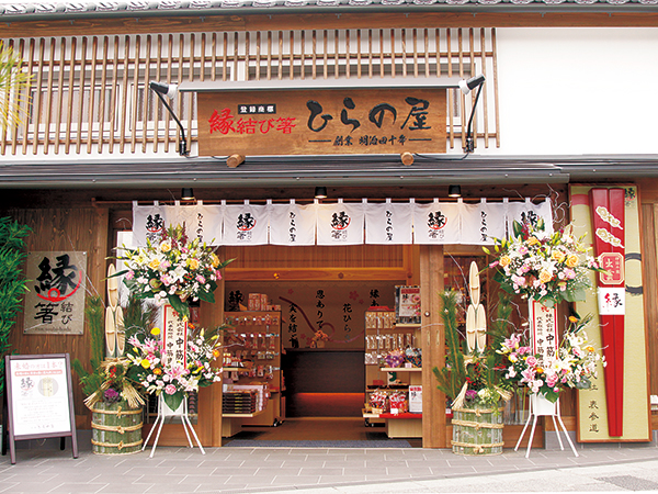 平成25年12月にリニューアルオープンしました。 縁結び箸が100種類以上に増えたほか、出雲大社参拝のお土産(出雲そば・まんじゅう・クッキー・お餅など)を多数取り揃えております。 お箸には無料で名前を彫刻することができ、友人やご両親へのお土産としてもお使い頂けます。 出雲大社参拝の記念に「出雲限定商品」名前を入れた縁結び箸はいかがですか?