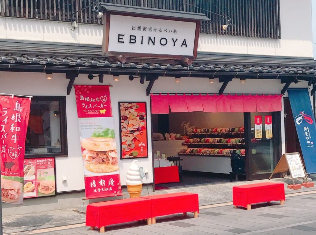 約40種類の『海老せんべい』のお店です!また手軽に食べ歩きが出来る、『島根和牛ご縁ライスバーガー』や『出雲クラフトコーラ』が大人気! 島根の「おいしい」を多くの方に、手軽に伝えて参ります