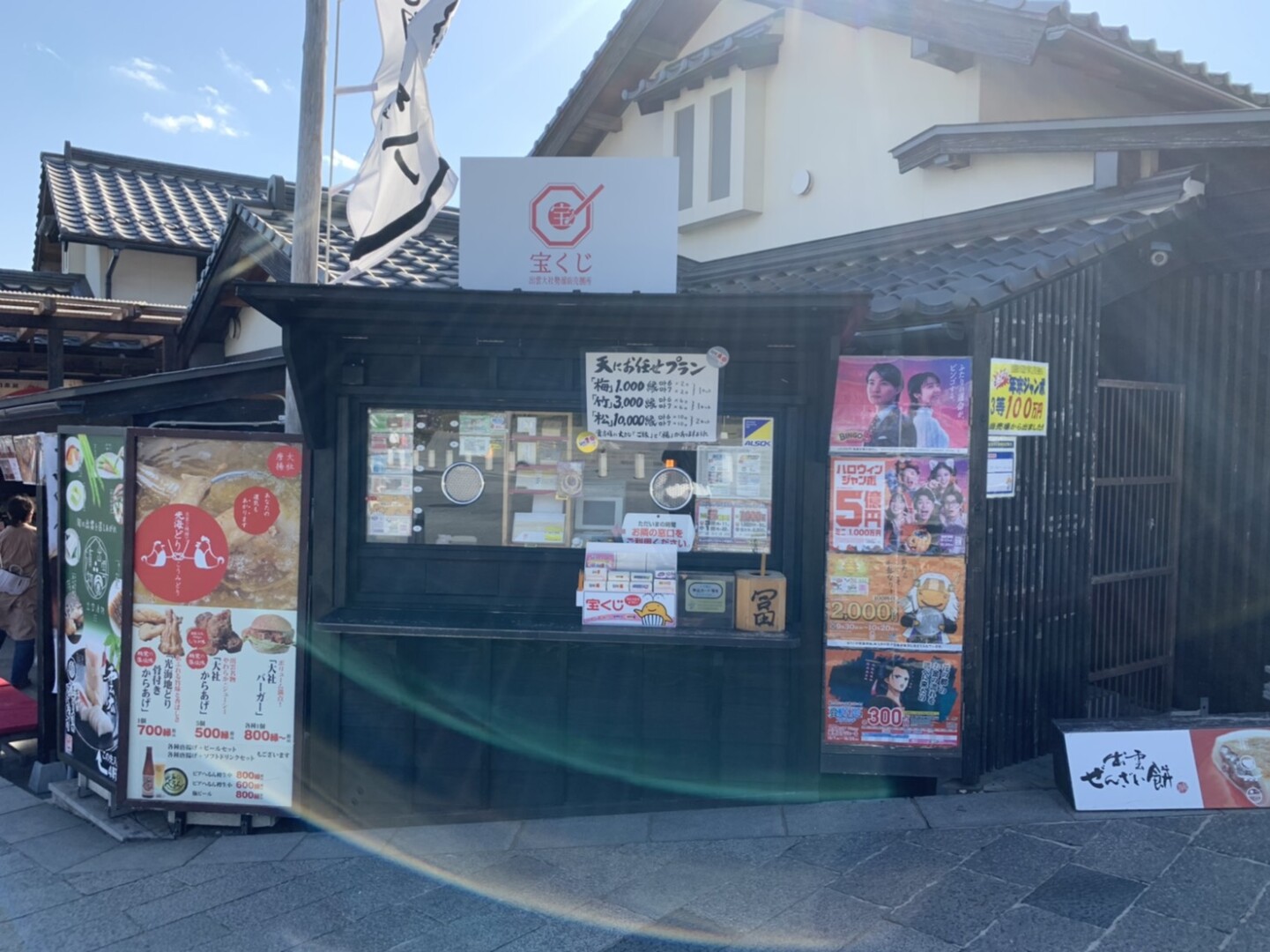 商店街のお店 商店街のお店 2026.01.23 宝くじ出雲大社勢溜前売捌所 宝くじ出雲大社勢溜前売捌所 かつて出雲大社勢溜り前にあったとされる、江戸時代から伝わる日本国内でも最高額が当たる富くじ売捌き所を現代版で復刻!富くじ場所が行われていたであろう場所で江戸時代の思いを馳せて。 主な取り扱い品宝くじ 営業時間 定休日 所在地出雲市大社町杵築南840-1 電話番号 店舗一覧にもどる