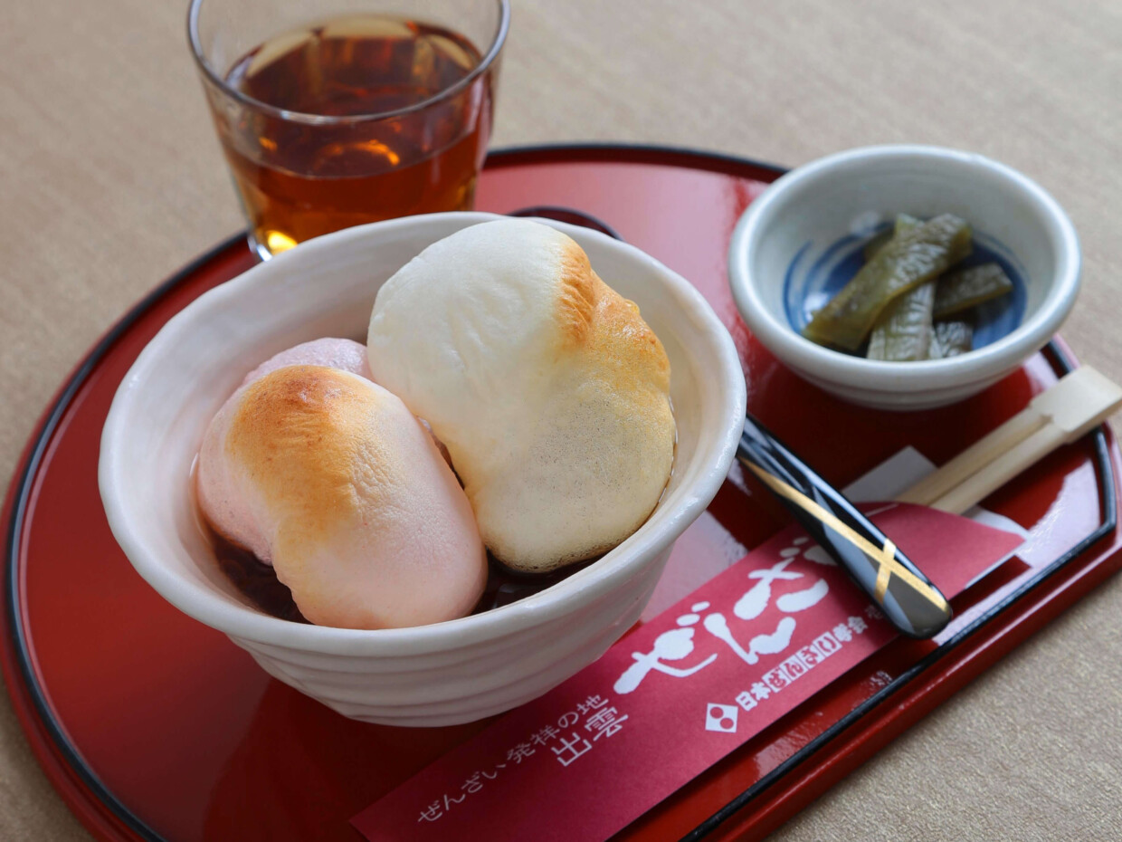いか・魚介・ナッツ・ドライフルーツ・菓子・島根の地酒を扱う日本初のおつまみ専門店です。120種のアイテムを常時販売。お気に入りのおつまみや新しい発見がきっとあります。また、出雲発祥の”ぜんざい”を大社に広めた「日本ぜんざい学会」とコラボし、カフェスペースにて「出雲ぜんざい」「中井貴一スペシャル(画像参照)」などの本格ぜんざいが楽しめるカフェスペースも併設。