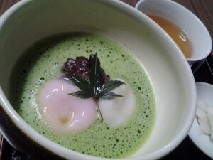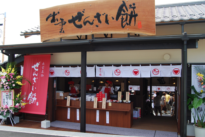 出雲名物ぜんざい餅は、出雲産大納言小豆と奥出雲産の餅米を使い、一つずつ職人が存えています。大社参りのお土産に、当店限定販売のぜんざい餅をどうぞお買い求め下さい。又、当店では出雲産の大納言小豆を使った出雲ぜんざいをお召し上り頂けます。新商品の抹茶ぜんざい、季節の和菓子も併せてお楽しみください。