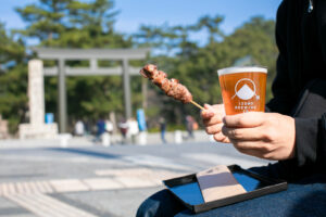 出雲大社勢溜前に店舗を構え、神門通りを見下ろす眺めの良い立地にあり、全てが手打ちによる本格的な出雲蕎麦屋です。二八そばをメインに、数量限定による粗挽き十割そばの二種類の蕎麦を味わえます。 店内にはモダンで落ちついた空間を演出しており、打ち立てのお蕎麦を是非一度ご賞味下さい。