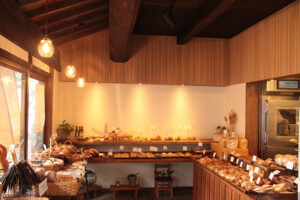 当店では、すべてのパンに天然酵母を使用し、国産や地元産の食材をなるべく使うよう心がけています。パン作りにかかる時間は、生地の仕込みから始めて焼き上げるまで、約16時間程かかります。手間ひまかけて、ゆっくりじっくり発酵させた生地は香りがよく、小麦の味わいのしっかりとしたパンに焼き上がります。製法、食材にこだわり、安心安全でおいしいパンを皆様に召し上がっていただくために、スタッフ一同、日夜励んでおります。