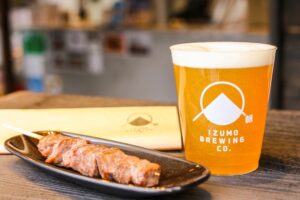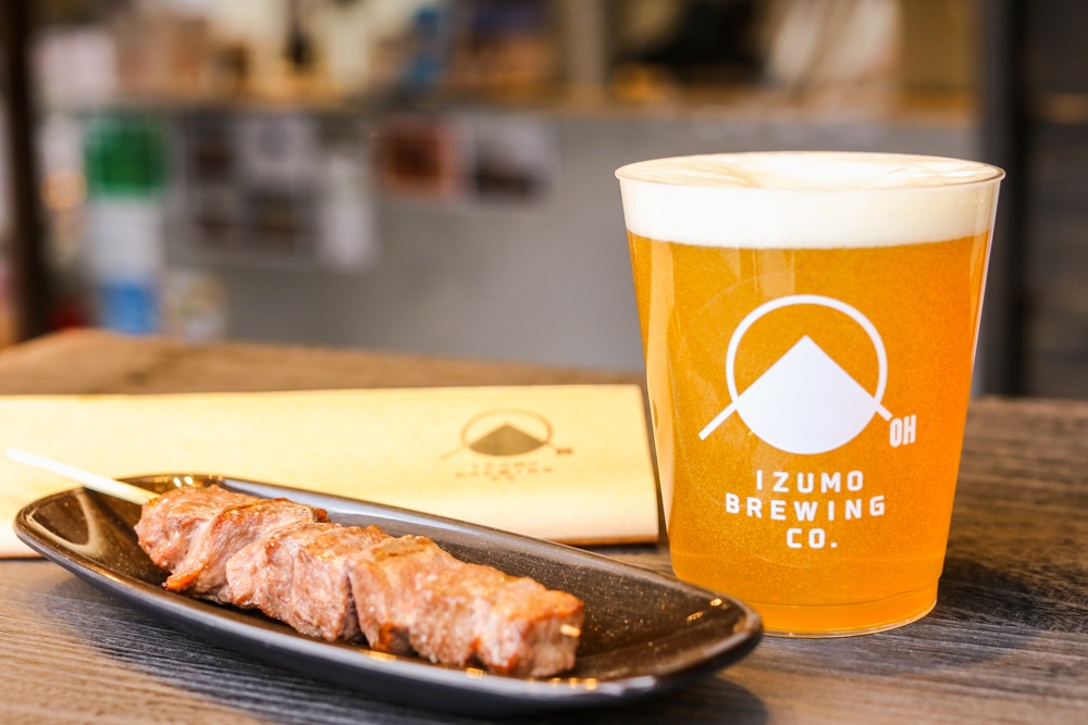 クラフトビールを気軽にお楽しみいただけるビアスタンドです。出雲市駅前の⼯場で醸造したオリジナルビール6種類を樽⽣でご⽤意しております。和⽜串など、お⾁を中⼼としたメニューをはじめ、地元の⽢いお芋を使った⽢味もございますので、是⾮お気軽にお⽴ち寄りください。