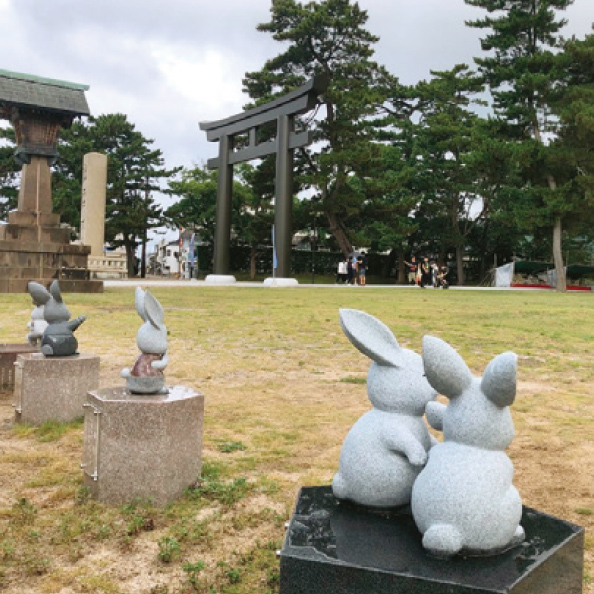 祭事の時は出店が並ぶ広場♪うさぎの銅像もあります